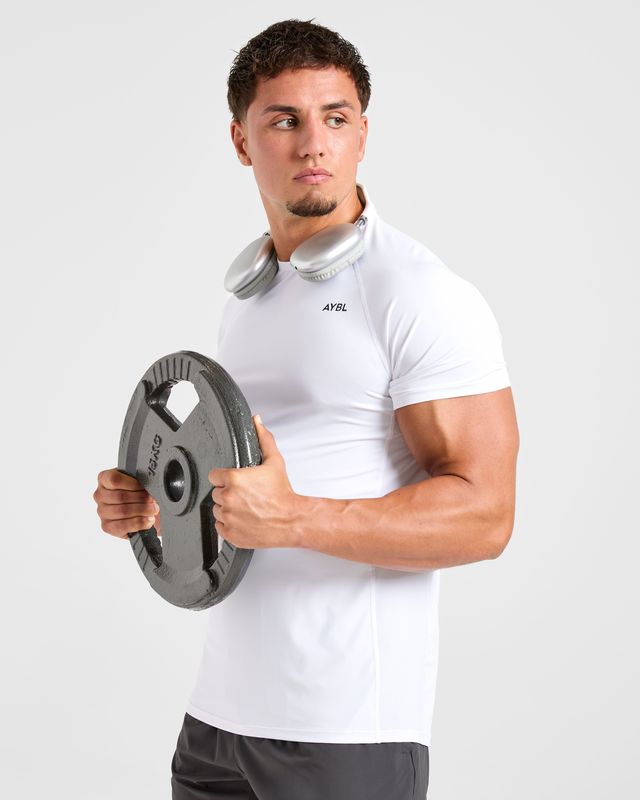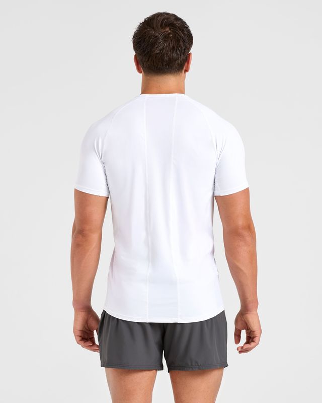 - Sleeve Design: Fitted short sleeves are tailored to highlight arm development while allowing full rotational freedom.