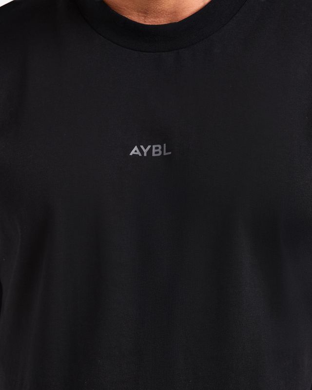 True versatility lies in simplicity. The front of the shirt features a tonal AYBL logo positioned on the chest. This subtle branding technique ensures the design remains understated and sophisticated, allowing the black colorway to serve as a versatile canvas for any outfit.