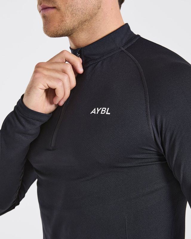 The inclusion of the AYBL branded 1/4 zip allows for customizable thermoregulation. You can unzip for maximum ventilation during peak exertion or zip up to retain warmth during cool-down phases. The printed logo on the front adds a touch of brand identity without compromising the fabric’s elasticity.