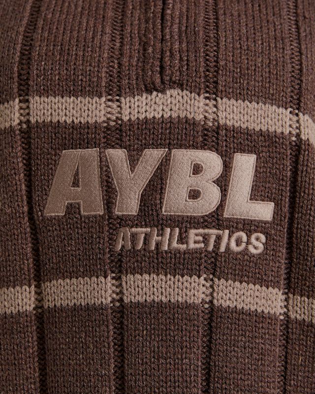 - Contrast Knit Detailing: Subtle striping adds depth and visual interest to the solid brown base.