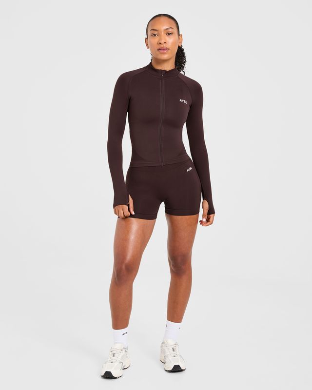 Experience the perfect fusion of sculpting comfort and high-performance durability with the Empower Seamless Full Zip Jacket in Cocoa Brown. This premium activewear piece is engineered to elevate your workout routine while providing a sleek, hip-length silhouette that transitions effortlessly from the gym to casual wear. Designed for athletes who demand both style and function, this jacket sets a new standard in versatile fitness apparel.