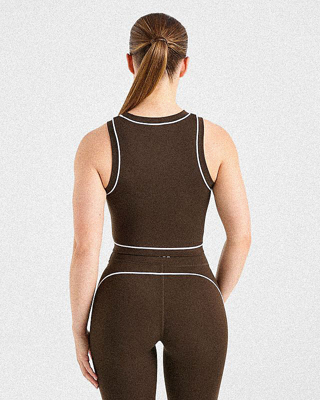 The Coffee Bean colorway adds a sophisticated, earthy neutrality that pairs effortlessly with any bottom in your wardrobe, making it a versatile staple for both gym sessions and casual outings.